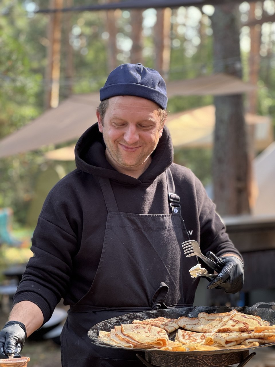 Палатки, спальники, коврики (если нет своих) и общее походное снаряжение: шатры, столы, стулья, костровое и кухонное оборудование